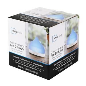 Enhance your space with the Mainstays Color-Changing Fan Diffuser, a compact and stylish aromatherapy solution. Designed for use with liquid essential or fragrance oils, this diffuser transforms your favorite scents into a gentle mist, creating a relaxing atmosphere in any room. Featuring soothing color-changing LED lights, it doubles as a calming visual accent. Compact in size, it fits seamlessly on desks, nightstands, or shelves, making it perfect for home or office use. The diffuser includes three fragrance pads and a USB power cord for convenient operation, ensuring you can enjoy your favorite scents effortlessly. Enjoy a harmonious blend of scent and light with the Mainstays Color-Changing Fan Diffuser, designed to bring relaxation and comfort to your everyday routine.