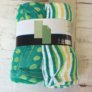 Mainstays Green and Yellow Striped and Dotted Beach Towels - 30inx60in