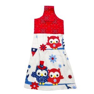 Mainstays Hanging Kitchen Towels Set of 2 Plus Trinket Dish Set Red White Blue