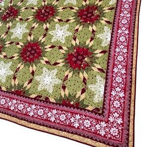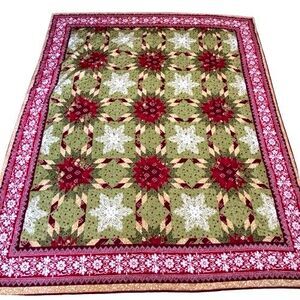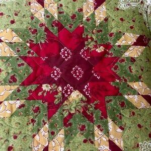 Mainstays Julianna Queen Christmas Quilt & 2 Shams 101" x 86" Holiday Starburst. Excellent preowned condition. Only used one season. No rips, cuts, holes, or stains. Comes from a smoke and pet free home. Please see pictures for more details.
