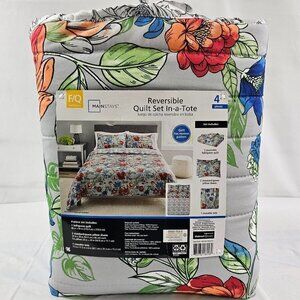 Mainstays Reversible Quilt Set In-a-Tote Full/Queen Grey Floral Bedding 4 PC Set