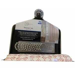 Mainstays Shower Set 15pc 1 Rug Pink 1 Caddy 1 Curtain 1 Rug 12 Hooks Brand New.
