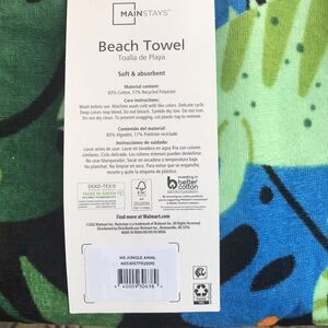 Mainstays Terry Beach Towel, Jungle Print, Monkey, Parrot, 28x60 Cotton