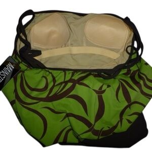 Mainstream Green & Brown One Piece Swimsuit, Blouson, Double Strap, Lined, 8 NWT