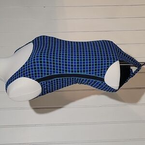 Mainstream One-piece bathing suit in multicolored check (tourquois-blue-black) with has side strip.