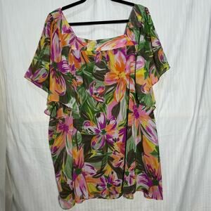 Mainstreet Blues Blouse Women’s Plus Size 4X Flutter Sleeves Tropical Florals