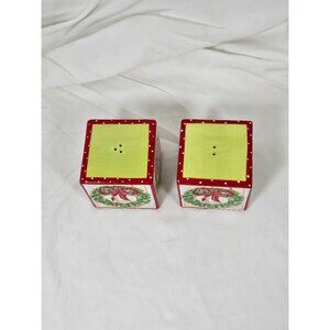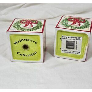Mainstreet Collection Christmas Wreath Salt and Pepper Shakers. Excellent Pre-owned condition. No chips or cracks. Measures approximately 2.5 x 2.5 inches. Please see pictures for measurements and details.