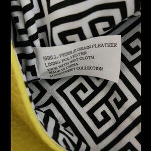 The Mainstreet Collection MSC Yellow Pebble Grain Pleather clutch wristlet pom is a small rectangular bag with a happy, pebbly, and fairy character. The exterior is made of faux leather with a yellow pebbled finish, while the interior features black and white lining an inner pocket. It comes with a yellow wrist strap for easy carrying and yellow hardware accents, making it a stylish and colorful accessory for various occasions. The pom detail adds a playful touch to this chic clutch from the MSC product line.
