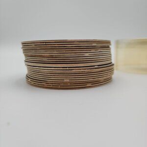 The coasters are in the original plastic container. The plastic container has yellowed, The coasters are not damaged and are unused. They measure 3.5 inches in diameter