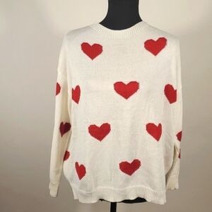 Mainstrip Cream sweater with hearts Size Medium