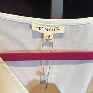Mainstrip white/pink long sleeve v neck tiered belted romper size S NWT