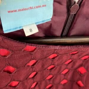 Maiocchi Broderie Anglaise Dress Women’s SZ 8 Burgundy Cotton Red Lining