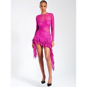 Maira Fuchsia Lace Long Sleeve Ruffle Dress