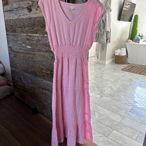 Details: Slip into style with this cap sleeved midi dress that features a ruffled hem and smocked waistline