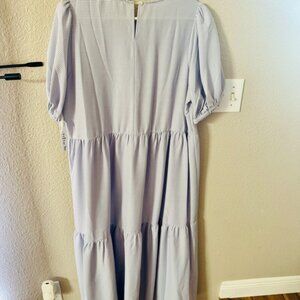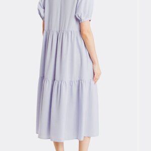 Flowy and fun, wear this with your favorite kicks running Saturday errands or for a zip to the strawberry patch followed by a sunny picnic. Light blue and white cotton microcheck pattern gives Gingham vibes all day. Short-puff sleeves add flair to this tiered layer maxi. I'm 5'7" and the dress length hits more like a midi than maxi - sort of in the middle of both styles. Size L, fits like a 10/12. Brand new, w/tags, never worn. Original price $185.