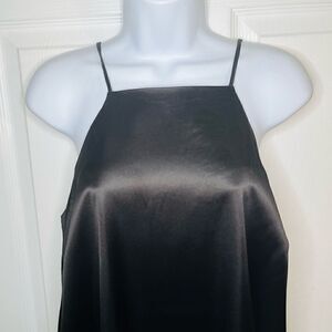 Maisie Monti Tiered Slip Dress Mini Satin Square Neck Drop Waist LBD Black M