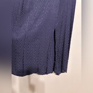 Maisie Navy Blue Morton Chevron Puff Sleeve Satin Silky Midi Dress XL