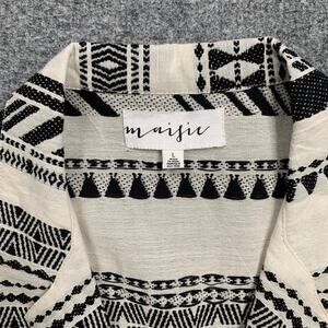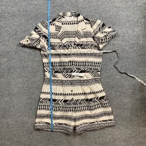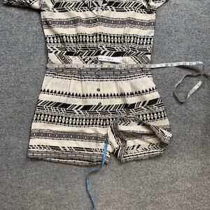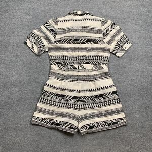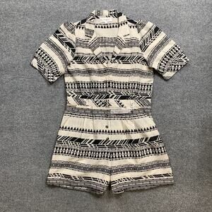Maisie Romper Womens L Large White Black Aztec Short Sleeve Button Up Gauzy