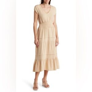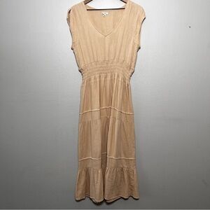 Maisie Women Dress Large Cream Cottagecore Boho Tiered Maci V-Neck Ruched Waist