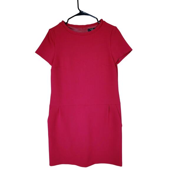 Maison 123 Paris Shift Dress sz M US 38 F Cranberry Red Stretch Pockets Career