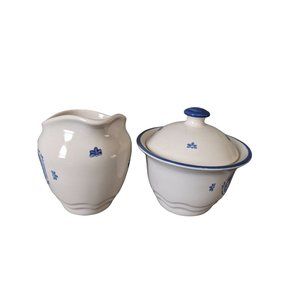 Maison Blue by PFALTZGRAFF cream and covered sugar bowl set blue white Rooster