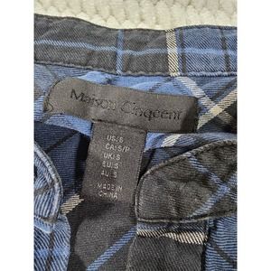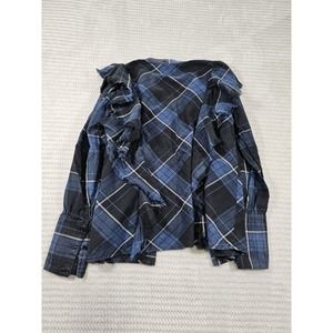 Maison Cinqeent Shirt Womens Small Plaid Button Down Raw Hem Ruffled Front
