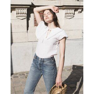 Maison Cleo Lisa Babydoll Blouse in White Cotton - Size M
