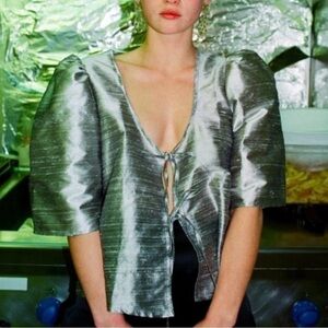Maison Cleo Silver Silk Blouse Size S/M/L