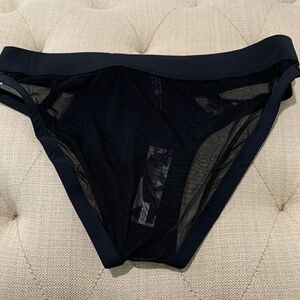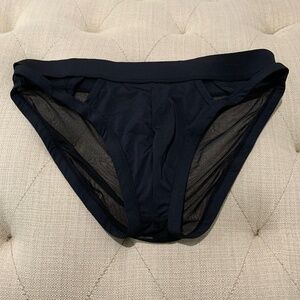 Fitted men’s brief with sheer back. Perfect for the guy that likes a fitted pair of briefs with a little temptation. Front has open sides