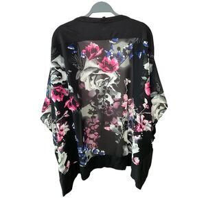 Maison & Coupe Cocoon Cardigan Sweater Open Front Floral Print Black Large