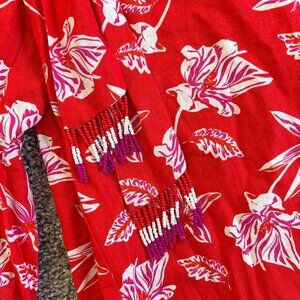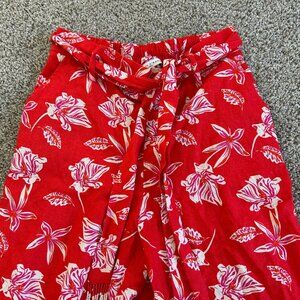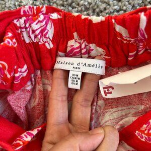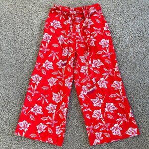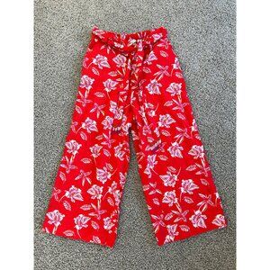 Maison D' Amelie Womens Sz M BeadedFloral Linen Blend Cropped Wide Leg Pant