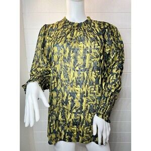 Elevate your wardrobe with this stunning Maison D'Amelie Floral Long Sleeve Regency Blouse in XL size. The blouse features a high neck and button closure, with pleated and ruffle accents that add a touch of whimsy to the overall design. The blouse is perfect for any occasion, whether it be a wedding, party, or business event. The blouse is made of lightweight and sheer polyester material, making it perfect for all seasons. It is easy to care for and machine washable. The blouse is perfect for those who love the grunge and whimsy Goth fairy style, as well as those who love retro and vintage fashion. Add this unique piece to your wardrobe today and make a statement wherever you go. 1. Preowned Very Good Condition 2. No Visible Flaws 3. See photos for measurements