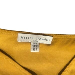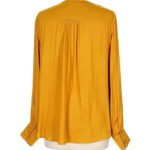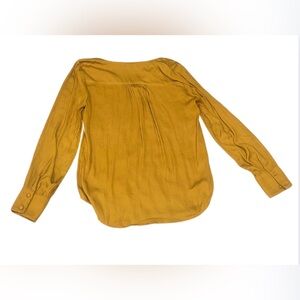 Maison D’Amelie Long Sleeve Satin V-Neck Blouse | Mustard/Gold | Size Small