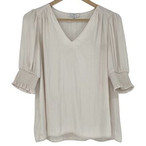 Maison D’Amelie Paris Champagne Cream Smocked Puff Sleeve Blouse Women’s Medium