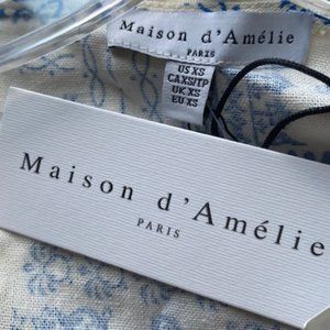 Maison D’Amélie Paris Blue Tile Print WrapTop and Skirt Set Preppy. Coastal