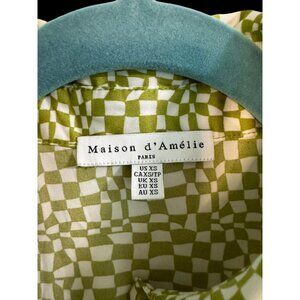 Maison DAmélie XS Green Checkerboard Tie-Front Blouse