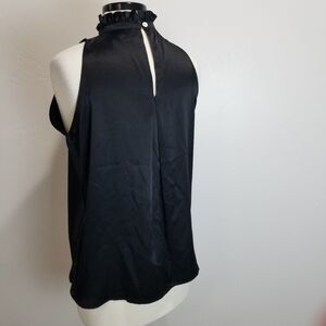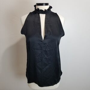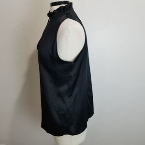 Maison De Papillon Blouse Medium Silk Shell Sleeveless Black High Neck Keyhole