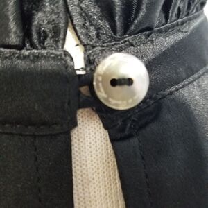Elevate your wardrobe with this stunning Maison De Papillon blouse. Crafted from luxurious silk satin, this sleeveless top features a high neck with a keyhole design and a button closure. The black color and solid pattern make it versatile for any occasion, from formal events to casual outings. The blouse is accented with a beautiful ruffle and is designed with a regular fit for a flattering look. It is available in size medium and is perfect for all seasons, including winter, summer, fall, and spring. Made in the United States, this blouse is a must-have addition to any fashion-forward woman's collection.