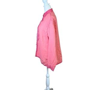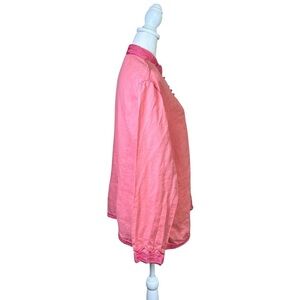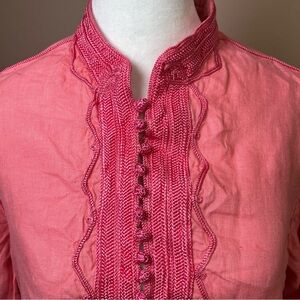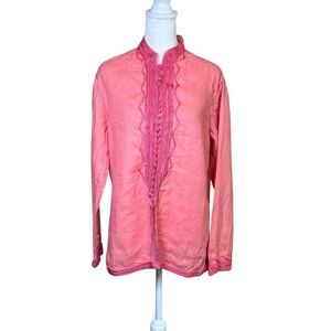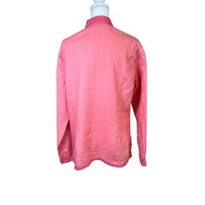 Maison Du Caftan Coral Pink Linen Tunic Long Sleeve Top Embroidered Fits US M/L