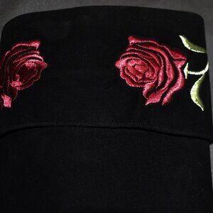 Maison Ernest Paris Boots Sz 10 EU 41 19" Black Suede Red Embr. Roses Heel 4.5"