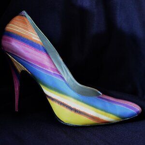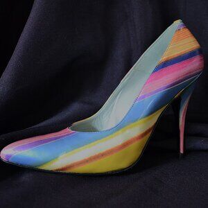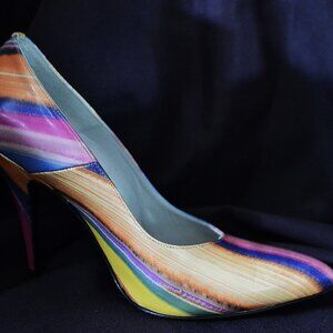 Maison Ernest Paris Heels Size 10 M Stiletto 4.5" Rainbow Colors Leather Italy