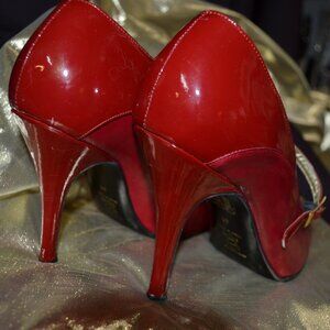 MATERIAL - Red Calf Leather on the front of the shoes - Red patent leather on the heel, sides and on the stiletto heel.