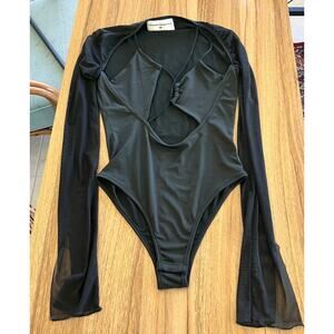 Maison Femalien Lina Cutout Strappy Mesh Bodysuit Black Small