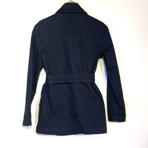 Maison Jules Belted Denim Double Breasted Stretch Jacket Dark Wash Denim xs