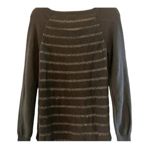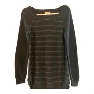 Maison Jules Black Sweater with striped black glitter detail size medium