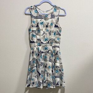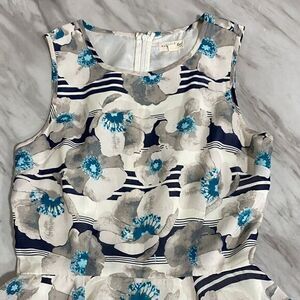 Maison Jules Blue Floral Stripe Fit & Flare Dress Size Small