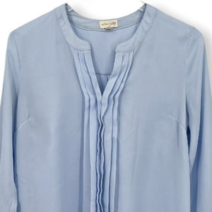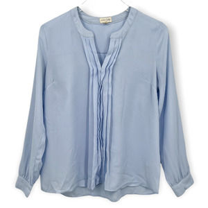 Maison Jules Blue V Neck Pleated Long Sleeve Pullover Blouse Size Medium