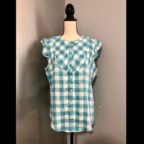 Maison Jules Button Down Ruffled Top