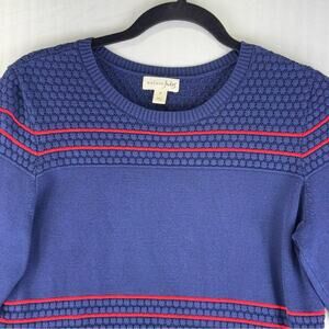 Maison Jules Crewneck Pullover Sweater Women’s Size Medium Blue Red Striped