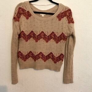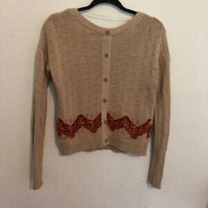 Maison Jules Cropped Zig Zag Knit Sweater Size Womens S Chunky Fall Boho Buttons